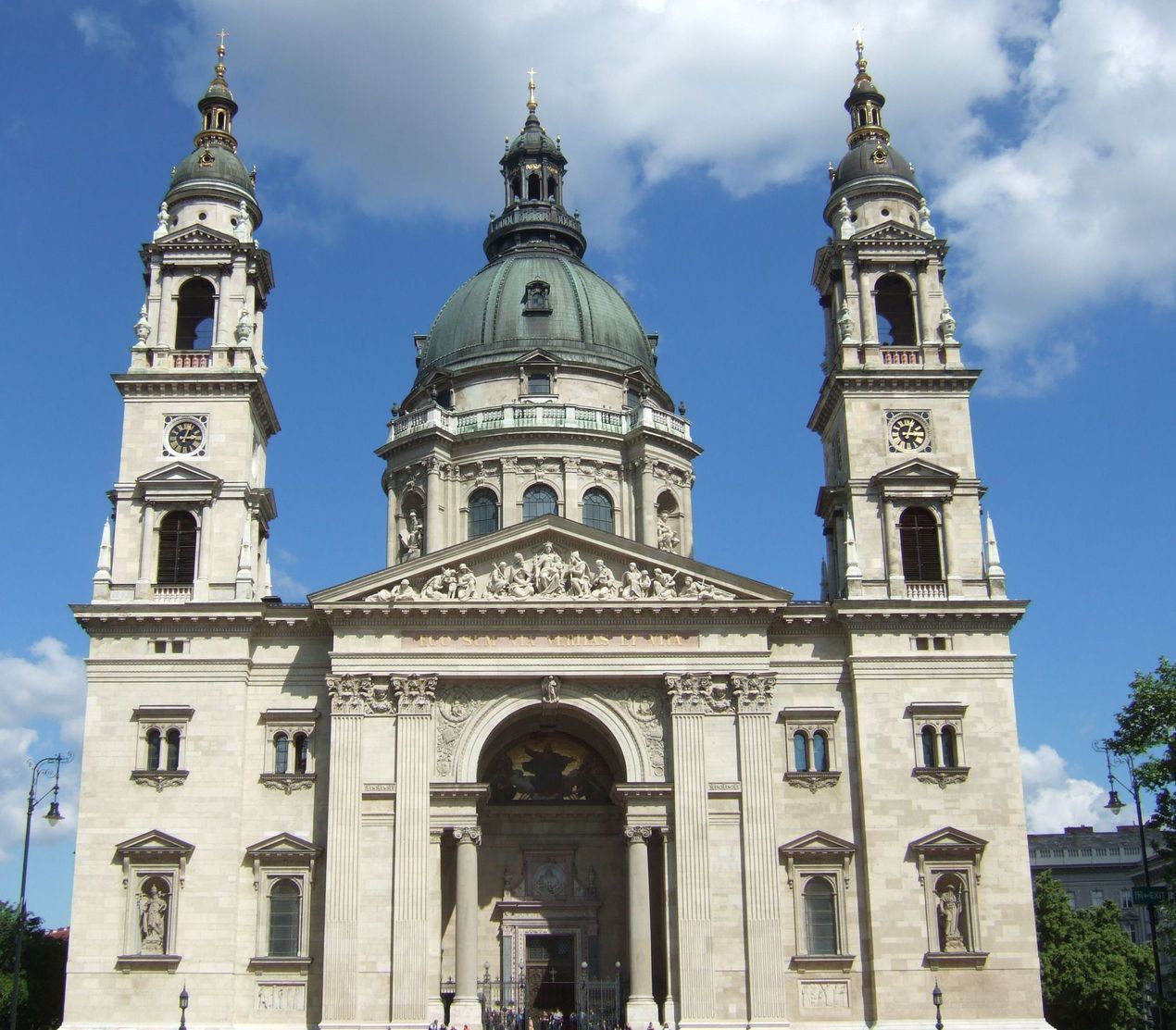 и через здание оперы выходим к Базилике святого Иштвана - католическому собору - крупнейшему храму столицы. В правой колокольне находится самый большой колокол страны весом в 9 тонн.