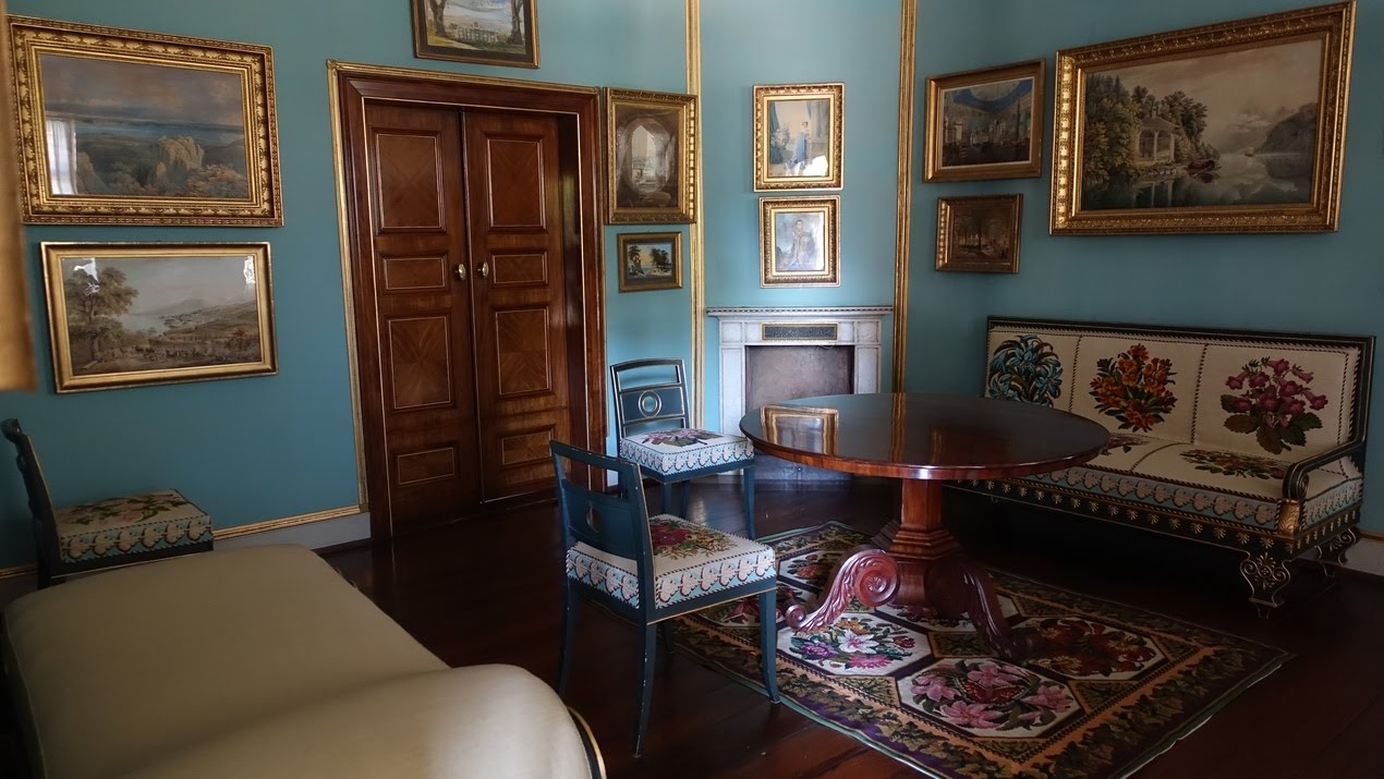 Голубая (лазуритовая) комната (передняя) со вставками из лазурита в столешницах расположена на женской половине дворца.