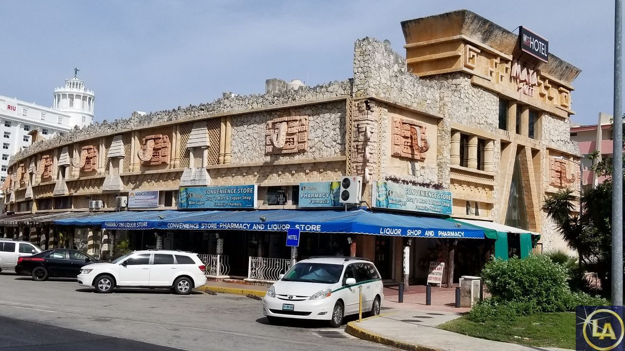 Накупавшись вволю, пошли гулять по городу. В туристической его части дома стилизированны под индейские. Узнаете головы бога дождя Чака? Если носы у него опущены вниз то это… Правильно, как я писала об Ухмале «если носы у бога подняты вверх - это маски с просьбой дать дождь. Если носы опущены вниз - это благодарение за данные дожди.