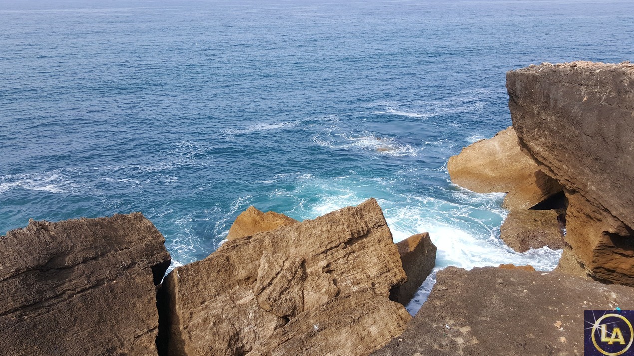 а справа море с силой бьется о камни, создавая отличные волны