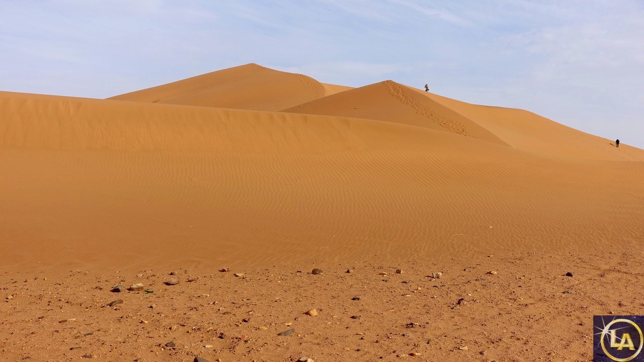 Кедровые леса сменяются пустынной местностью, за которыми простираются бескрайние пески и барханы пустыни.